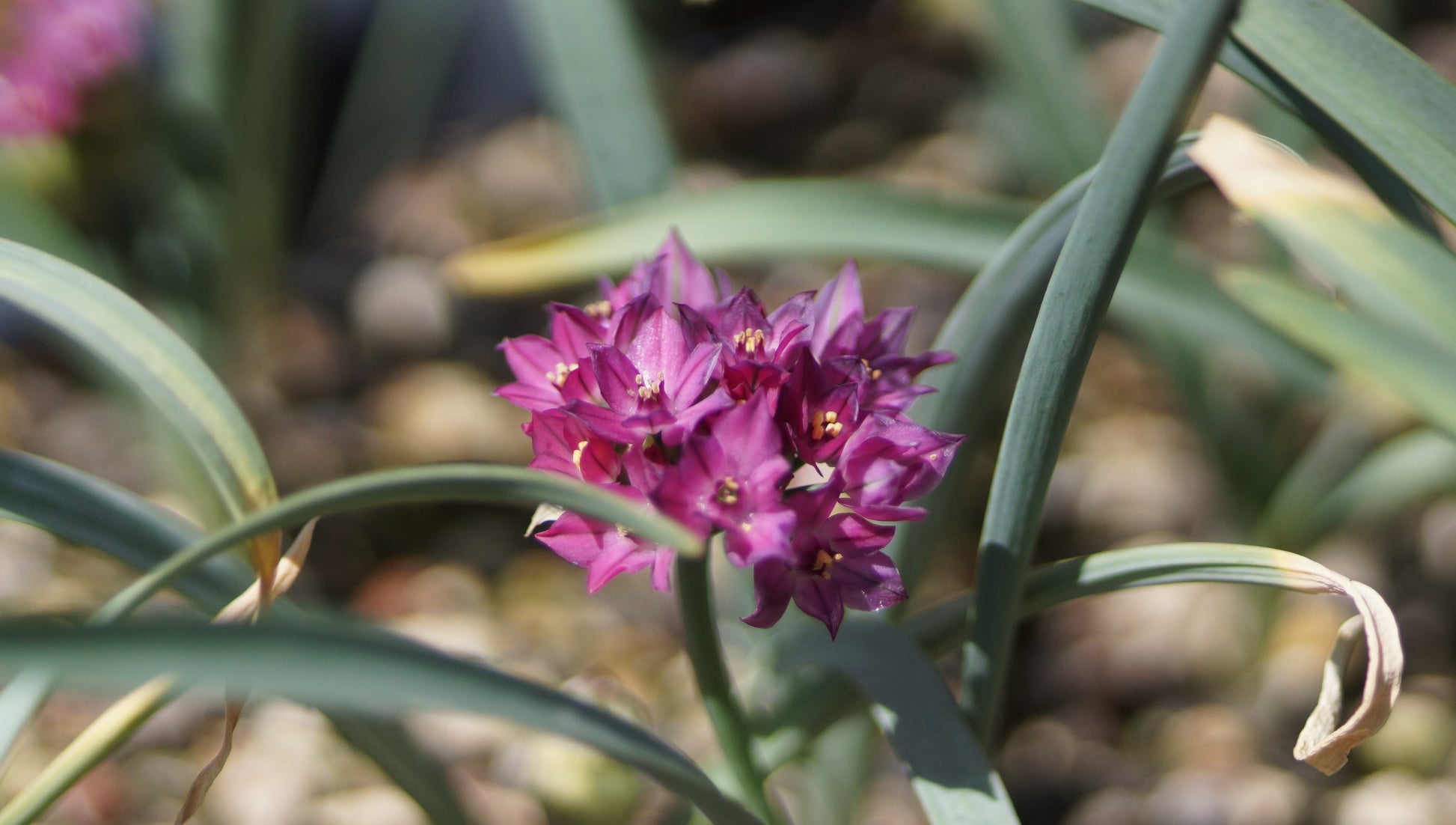 Allium oreophilum 'Samur' gehört zu den kleinen, feinen Zierlaucharten, die im Frühling grosse Wirkung im Detail entfalten. Seine leuchtend karminrosa Blüten stehen in flachen, offenen Dolden und zeigen sich bereits ab Mai. Ein willkommener Farbklecks für trockene, sonnige Plätze im Beet oder im Trog.