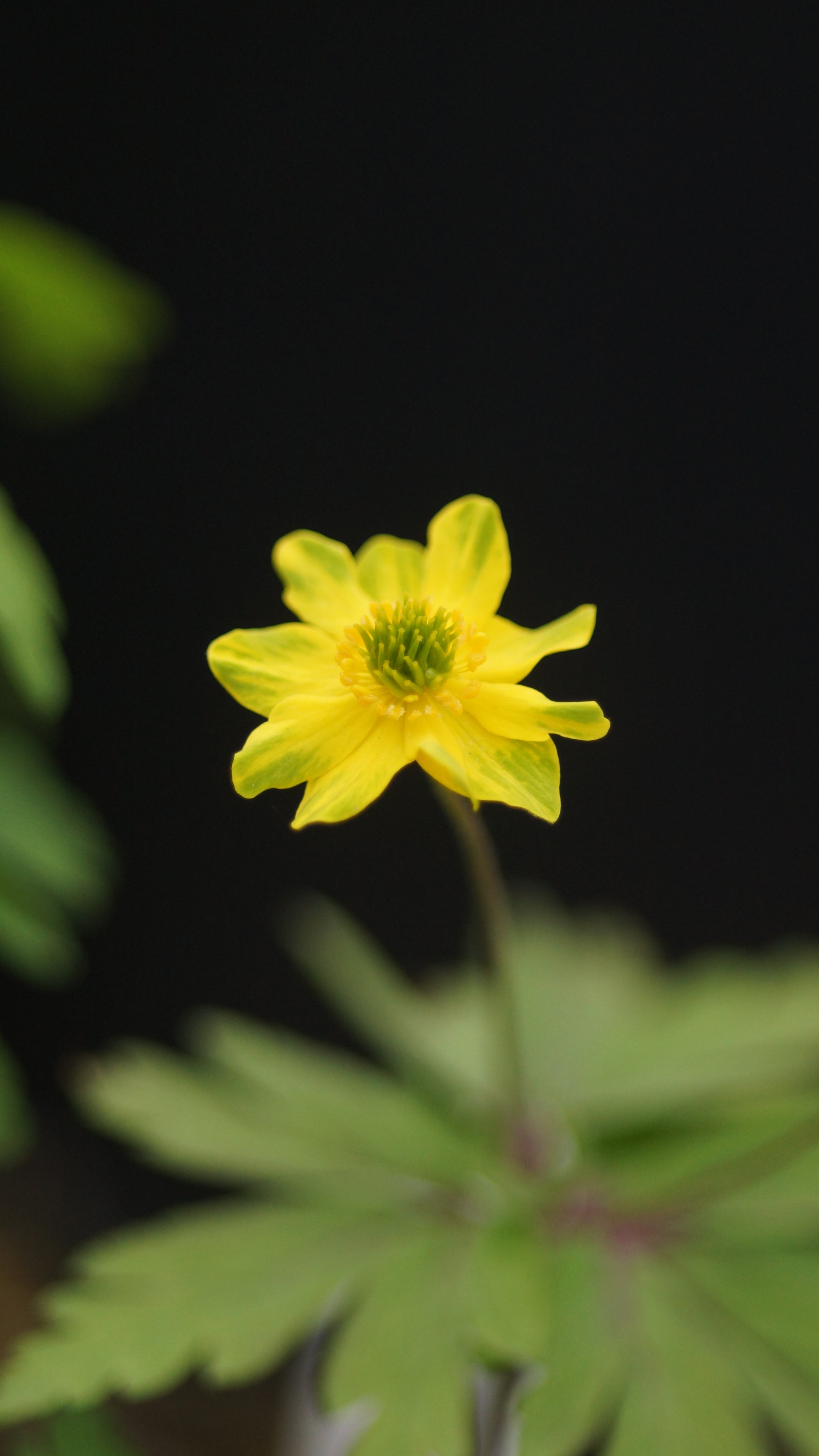 Ein besonders apartes gelbes Buschwindröschen aus den Selektionen von Markus Meditsch, das durch seine auffällig zweifarbige Blüte besticht. Die leuchtend gelben Petalen zeigen zum Rand hin eine deutlich grünliche Tönung, was der Blüte eine überraschend exotische Ausstrahlung verleiht. In der Mitte kontrastieren sattgrüne Staubfäden mit goldgelben Staubbeuteln.