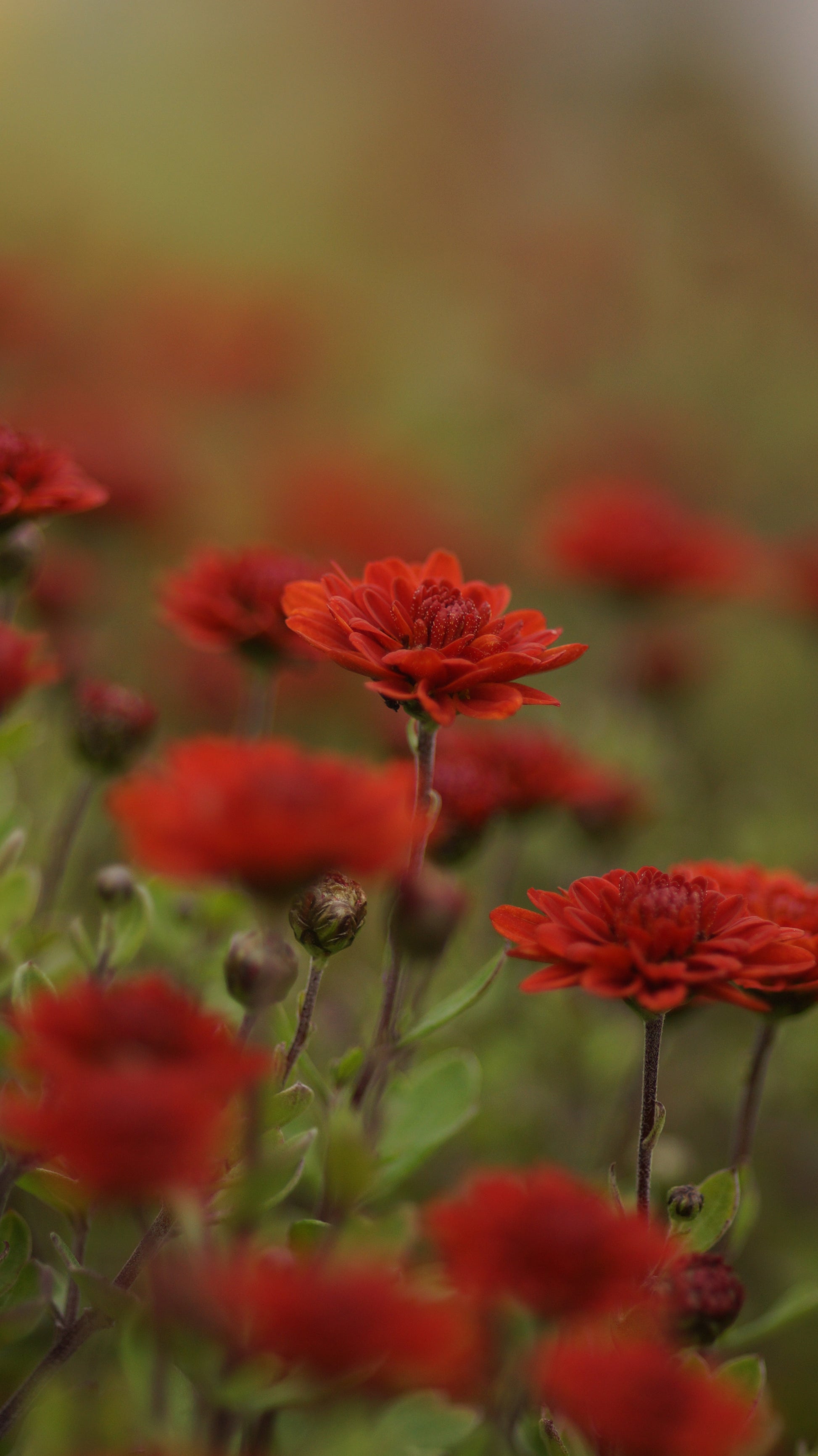 Im Garten zeigt sie schnell, weshalb sie erhalten bleiben sollte: kompakt, standfest, unverwüstlich. Die leuchtend roten, gefüllten Blüten erscheinen bereits ab September und halten oft bis in den Oktober hinein. Mit 40–60 cm Höhe bleibt sie angenehm niedrig und kippt auch bei Regen nie.