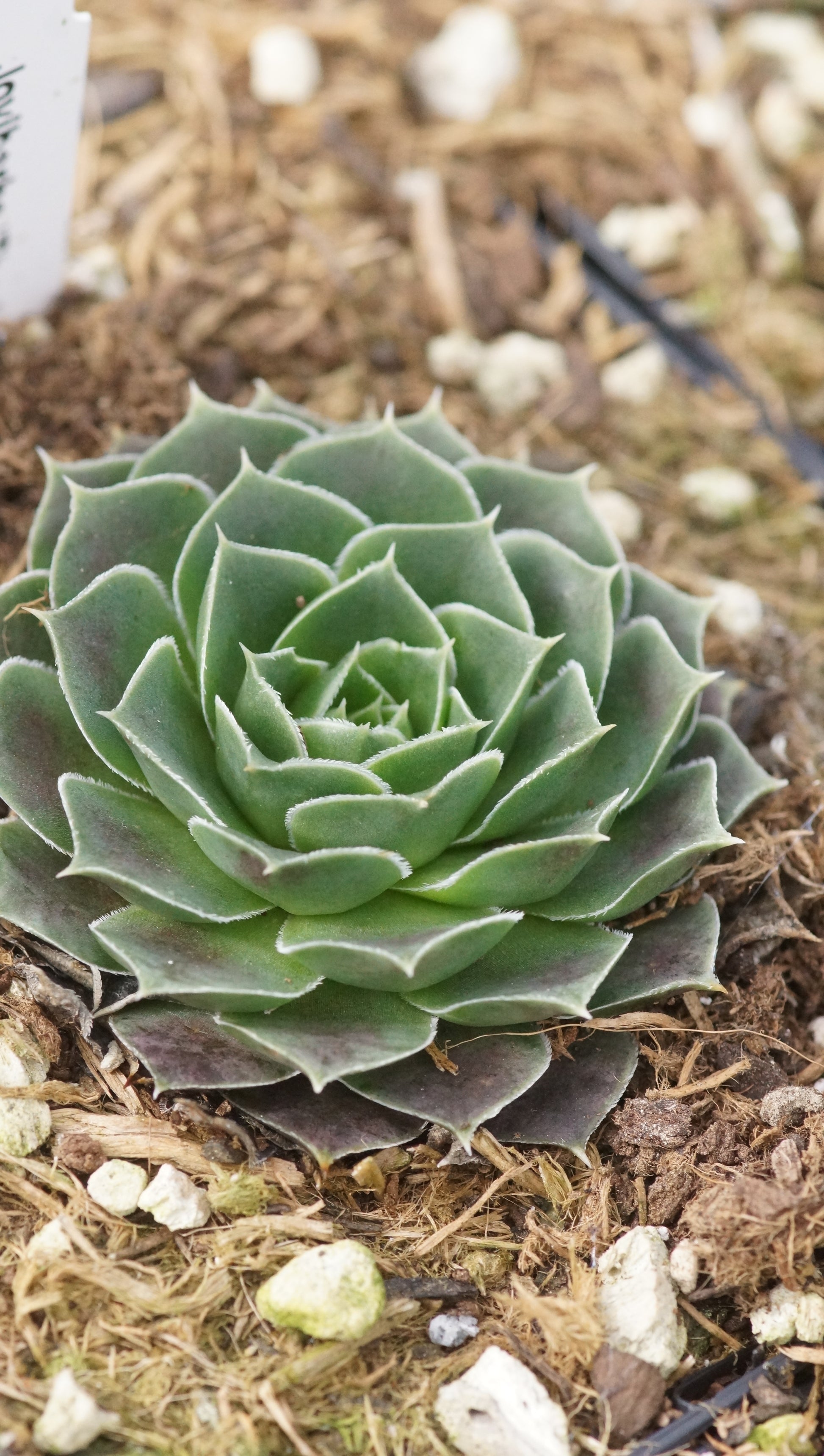 Sonstiges: grosse, olivgrüne Rosetten, im Frühjahr violettrosa mit Rand
